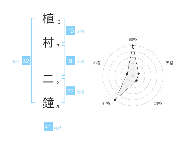 植村 二鐘さんの総格は41画の5点!