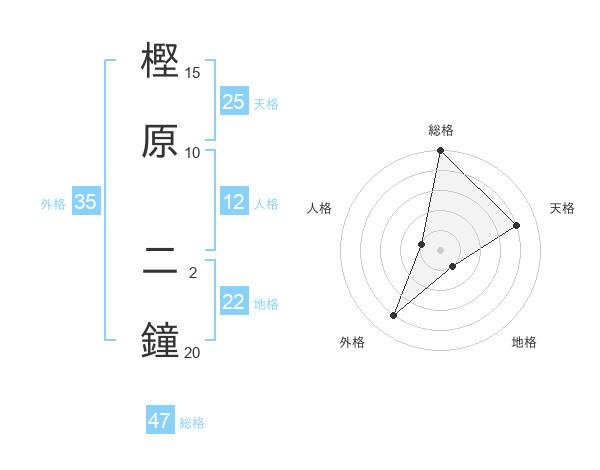 樫原 二鐘さんを姓名の画数から五運を鑑定