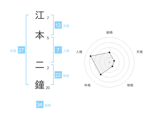 江本 二鐘さんの外格は27画の3点!