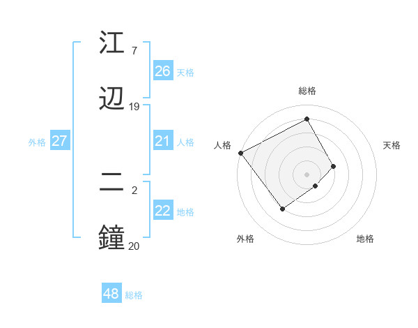 江辺 二鐘さんの外格は27画の3点!