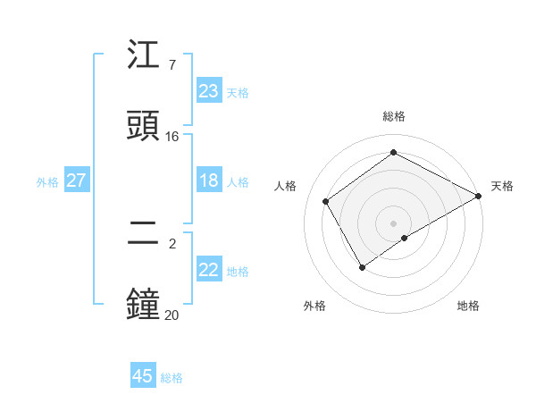 江頭 二鐘さんを姓名の画数から五運を鑑定
