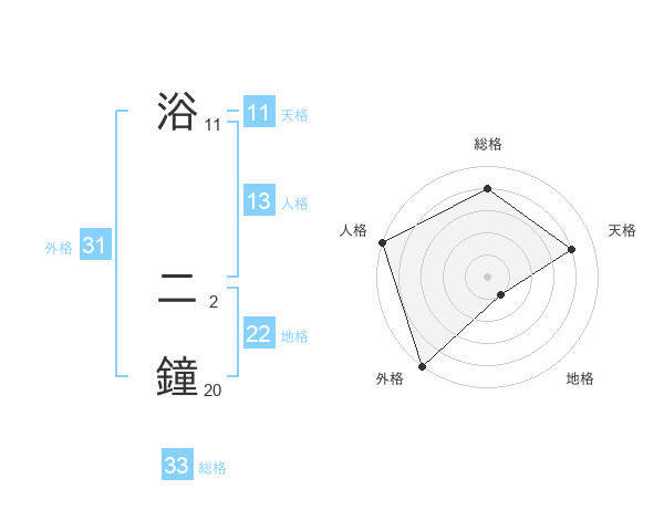 浴 二鐘さんの総格は33画の4点!