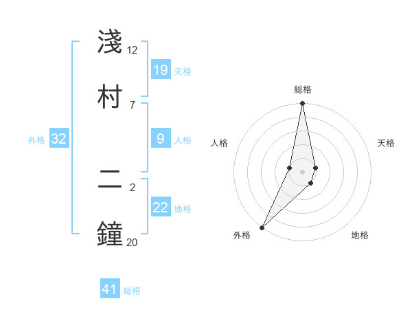 淺村 二鐘さんの総格は41画の5点!