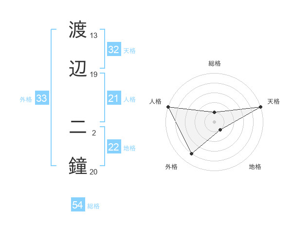渡辺 二鐘さんの天格は32画の5点!