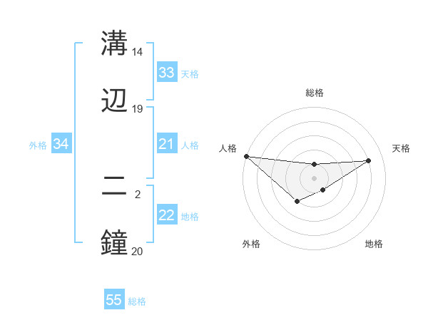 溝辺 二鐘さんの総格は55画の1点!