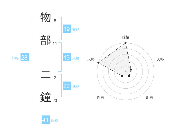 物部 二鐘さんの外格は28画の1点!