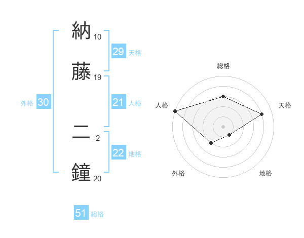 納藤 二鐘さんを姓名の画数から五運を鑑定