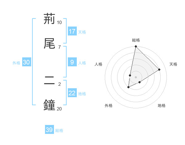 荊尾 二鐘さんの総格は39画の5点!