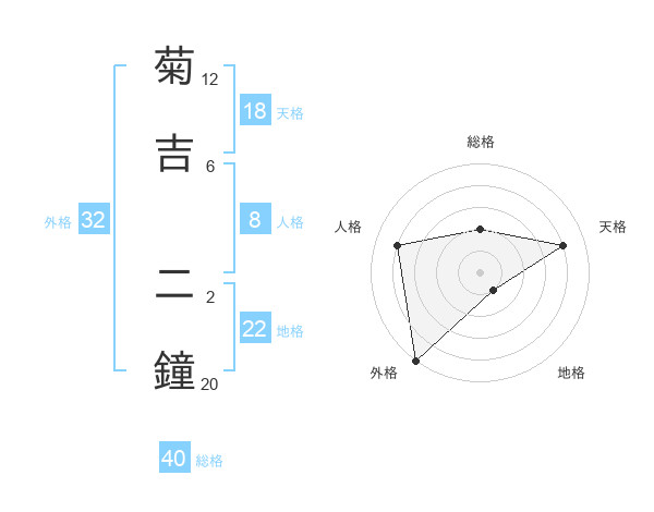 菊吉 二鐘さんの外格は32画の5点!