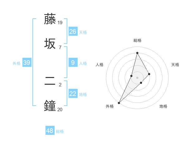 藤坂 二鐘さんを姓名の画数から五運を鑑定