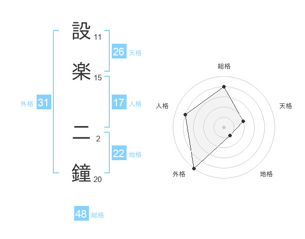 設楽 二鐘さんを姓名の画数から五運を鑑定