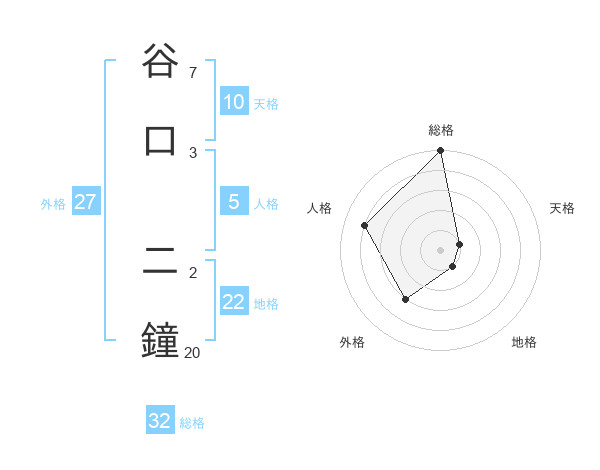 谷口 二鐘さんを姓名の画数から五運を鑑定