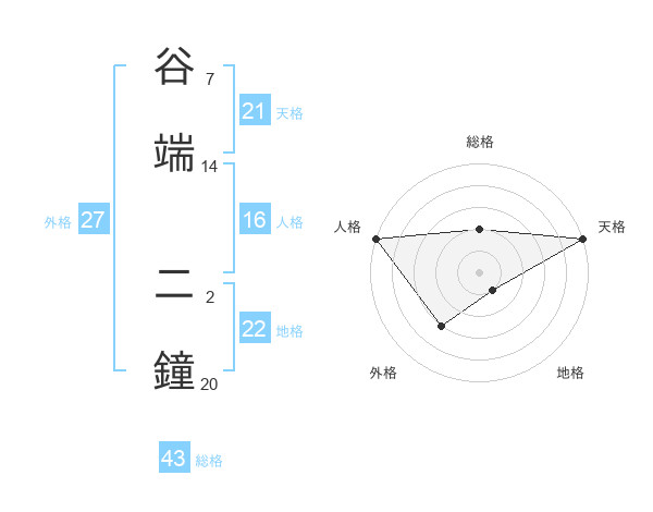 谷端 二鐘さんの総格は43画の2点!
