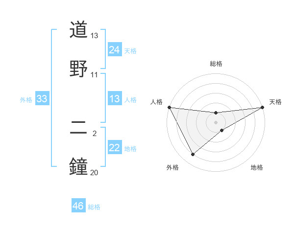 道野 二鐘さんを姓名の画数から五運を鑑定