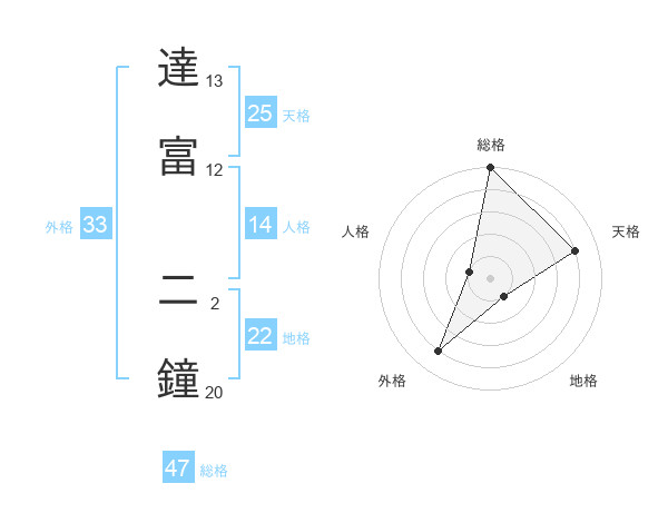 達富 二鐘さんの総格は47画の5点!