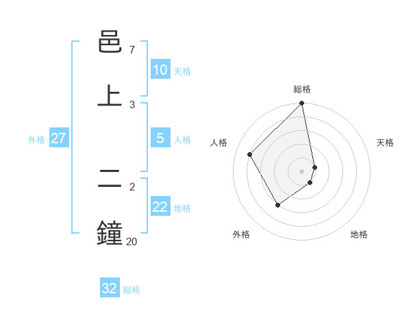 邑上 二鐘さんを姓名の画数から五運を鑑定