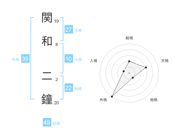 関和 二鐘さんを姓名の画数から五運を鑑定