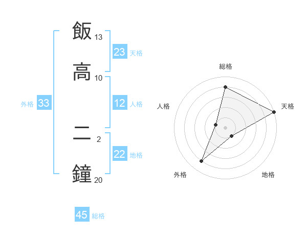 飯高 二鐘さんを姓名の画数から五運を鑑定