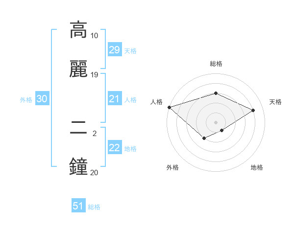 高麗 二鐘さんの総格は51画の3点!