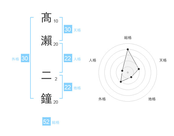 髙瀨 二鐘さんの名前の鑑定結果は!