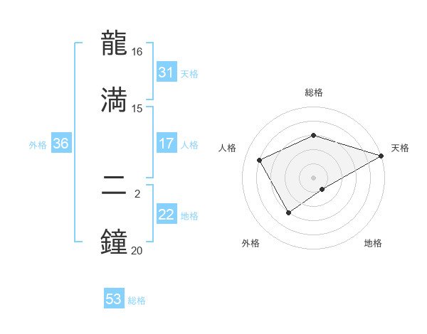 龍満 二鐘さんの総格は53画の3点!