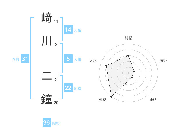 﨑川 二鐘さんを姓名の画数から五運を鑑定