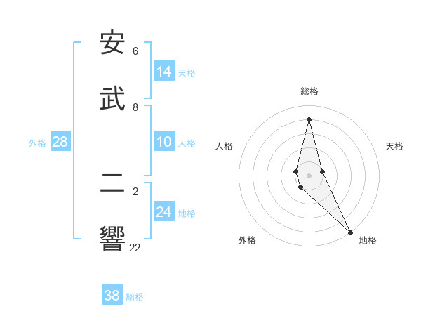 安武 二響さんの総格は38画の4点!