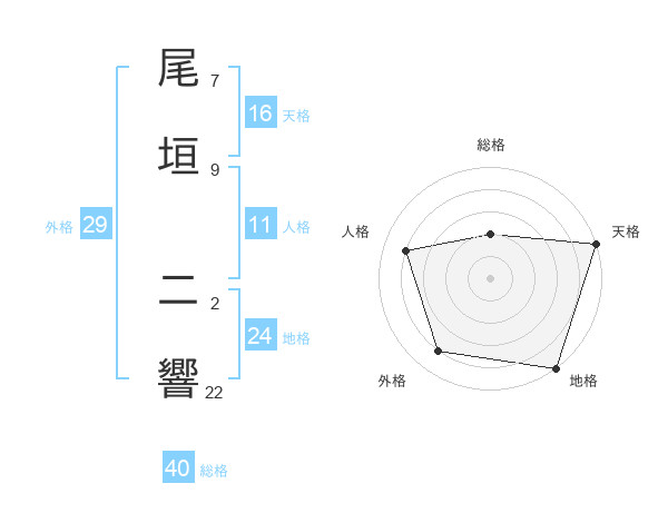 尾垣 二響さんの総格は40画の2点!