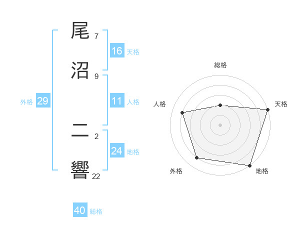 尾沼 二響さんの総格は40画の2点!