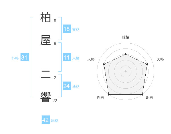 柏屋 二響さんを姓名の画数から五運を鑑定