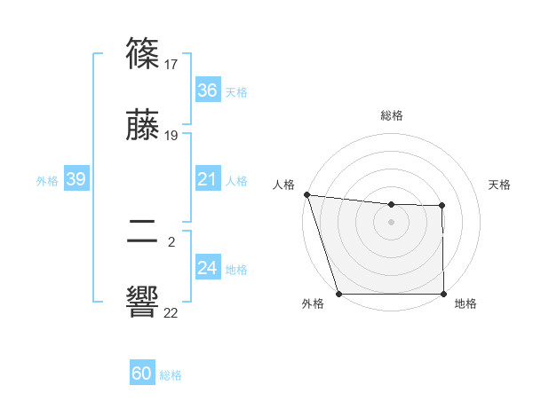篠藤 二響さんを姓名の画数から五運を鑑定