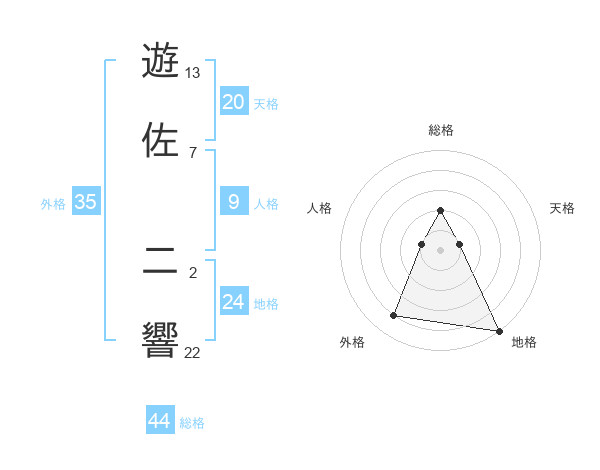 遊佐 二響さんを姓名の画数から五運を鑑定