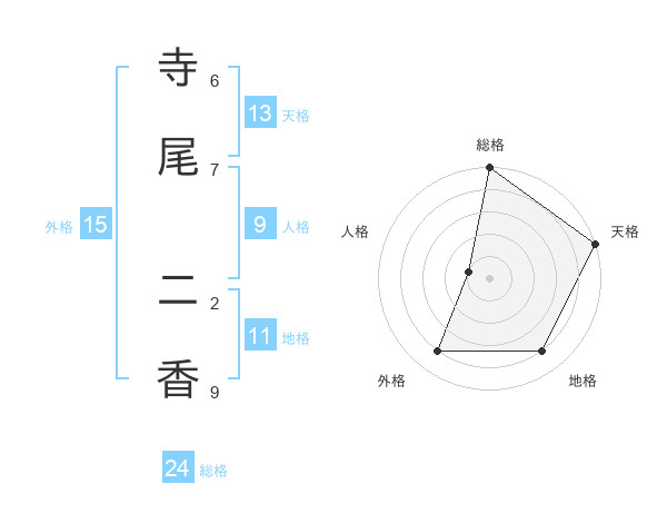 寺尾 二香さんの総格は24画の5点!
