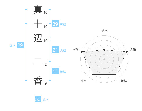 真十辺 二香さんを姓名の画数から五運を鑑定