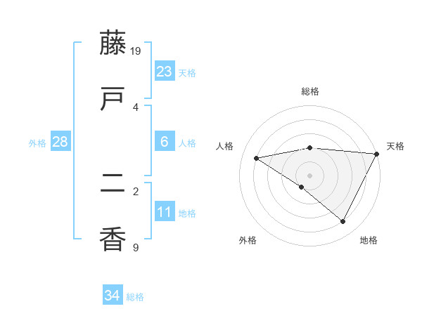 藤戸 二香さんを姓名の画数から五運を鑑定