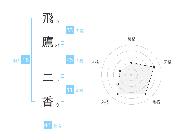 飛鷹 二香さんの総格は44画の2点!