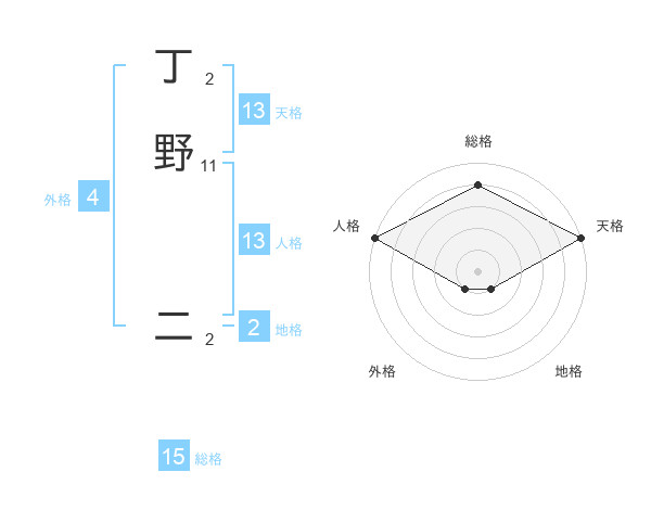 丁野 二さんの天格は13画の5点!