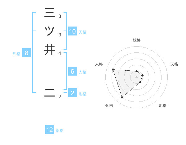 三ツ井 二さんの天格は10画の1点!