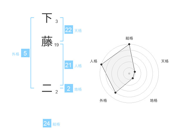 下藤 二さんの総格は24画の5点!