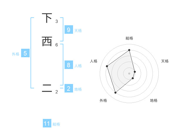 下西 二さんの外格は5画の4点!