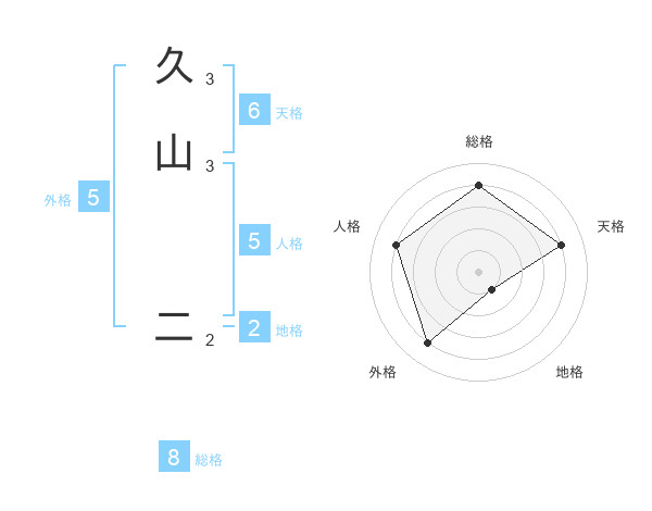 久山 二さんを姓名の画数から五運を鑑定