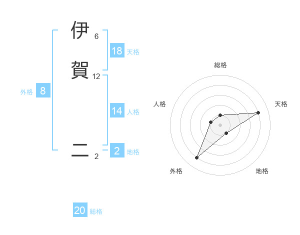 伊賀 二さんの総格は20画の1点!