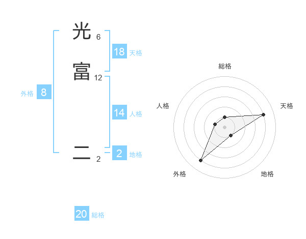 光富 二さんの総格は20画の1点!