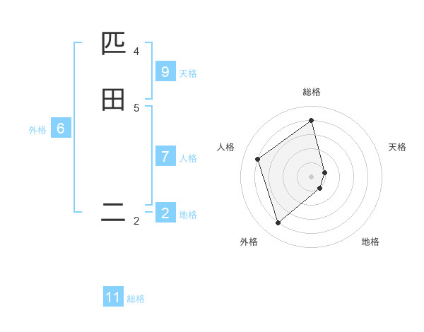 匹田 二さんの総格は11画の4点!