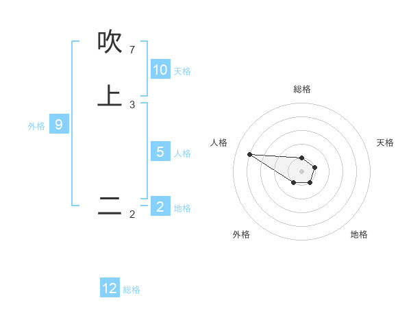 吹上 二さんの総格は12画の1点!