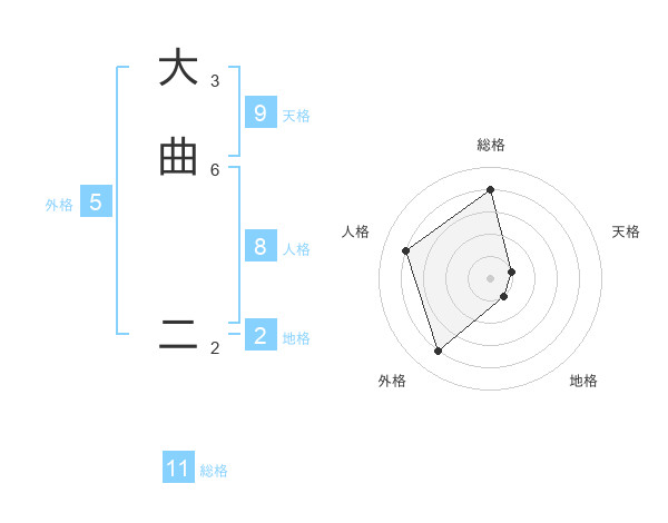 大曲 二さんの総格は11画の4点!