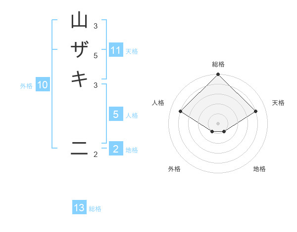 山ザキ 二さんの総格は13画の5点!