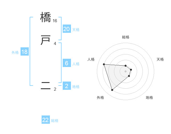 橋戸 二さんの天格は20画の1点!
