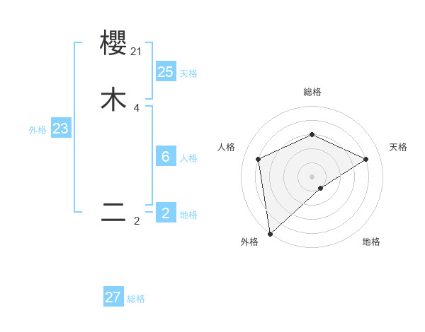 櫻木 二さんの外格は23画の5点!