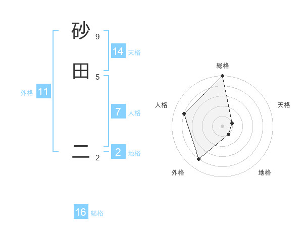 砂田 二さんの総格は16画の5点!